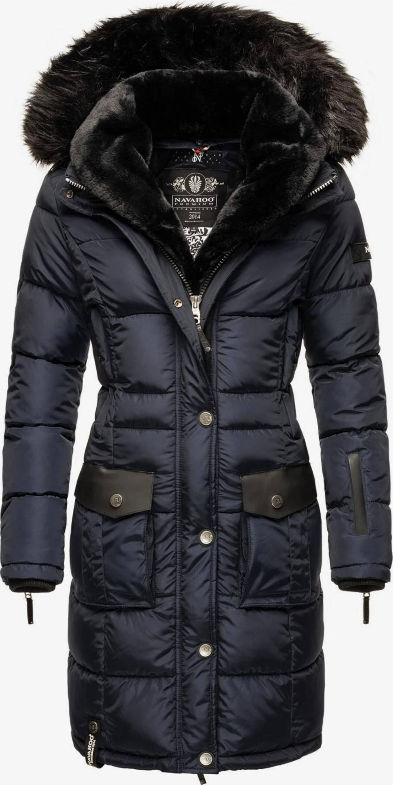 Couleur unieDoudoune matelasséeBoutonnière avec boutons pressionCeinture / ourlet élastiqueCapuche avec fausse fourrure en ornenementFentes latéralesCol montantFermeture éclair masquéePoche poitrinePoche intérieurePoches latéralesEtiquette patch / étiquette flagPiqûres de finitionsCoutures ton sur tonDoublure chaude