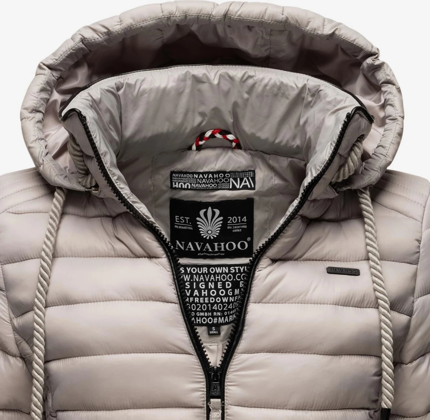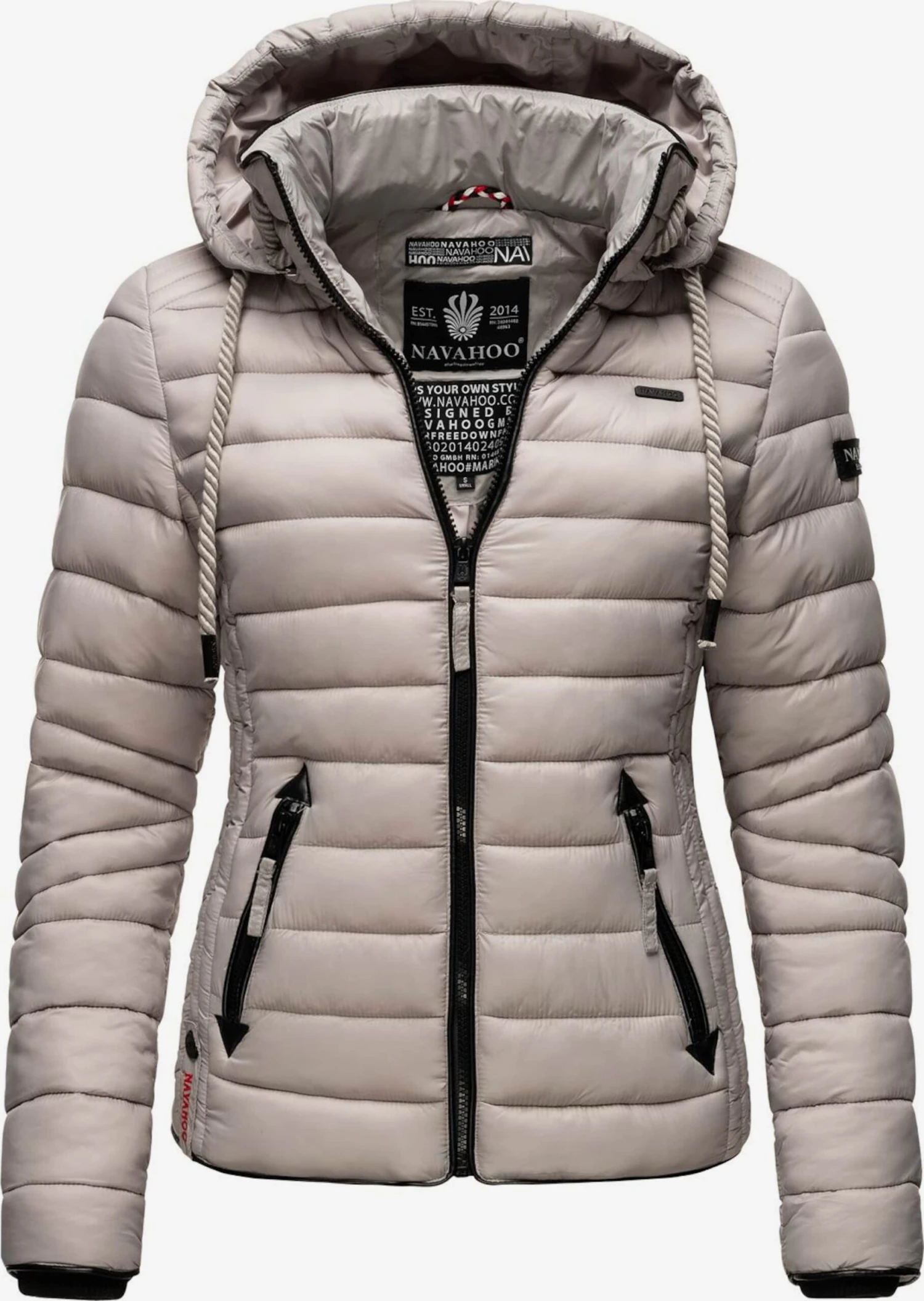 Couleur unieVeste matelasséeFermeture éclairCapuche détachableBord côteléCol montantCoupe cintréePoches latérales avec fermeture éclairScintillantEtiquette patch / étiquette flagPiqûres de finitionsTissu robusteLégèrement doubléFermeture à glissière