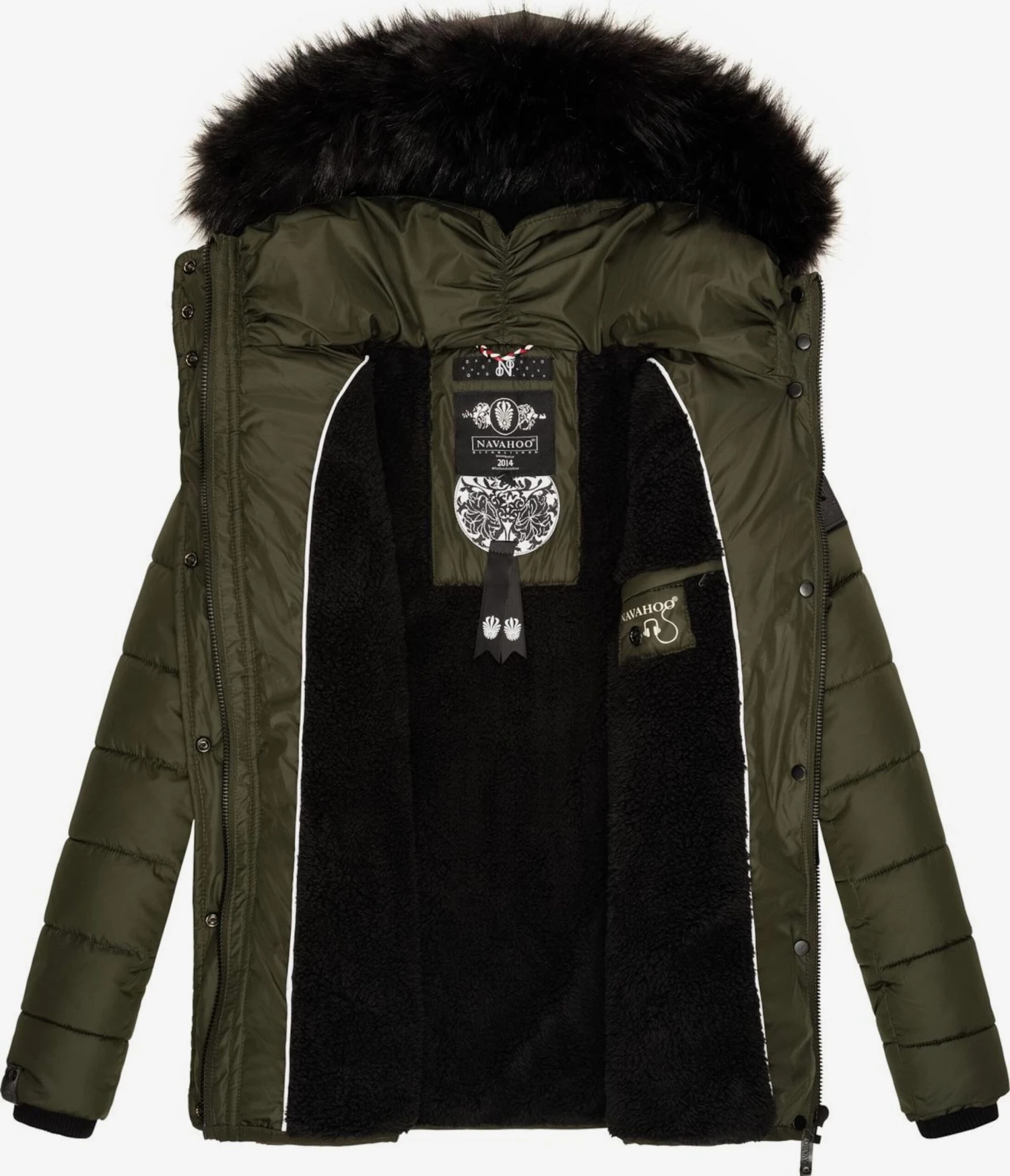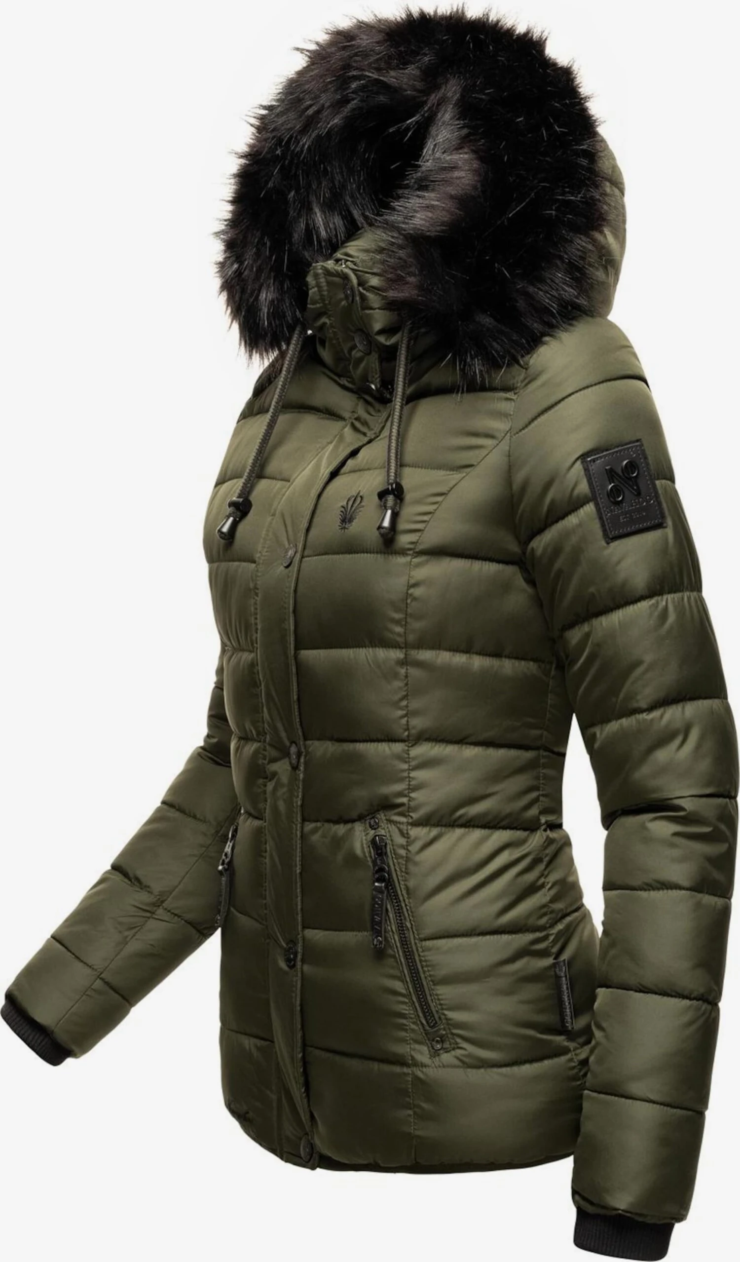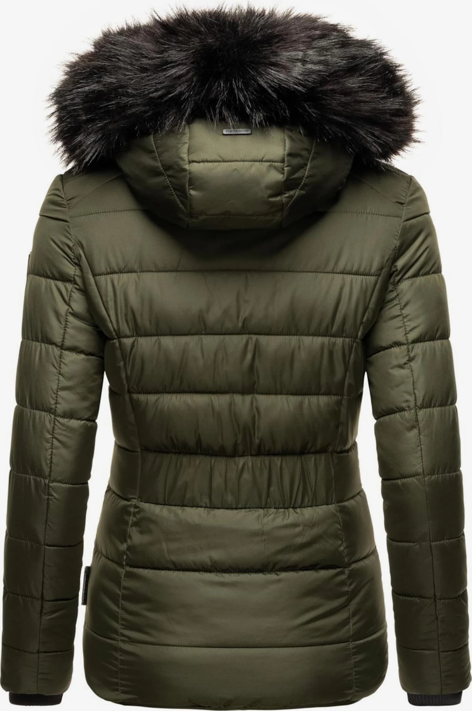 Couleur unieVeste matelasséeBoutonnière avec boutons pressionCapuche avec fausse fourrure amovibleBord côteléFermeture éclair masquéePiqûres de finitionsCoutures ton sur tonTissu lisseDoublure chaude